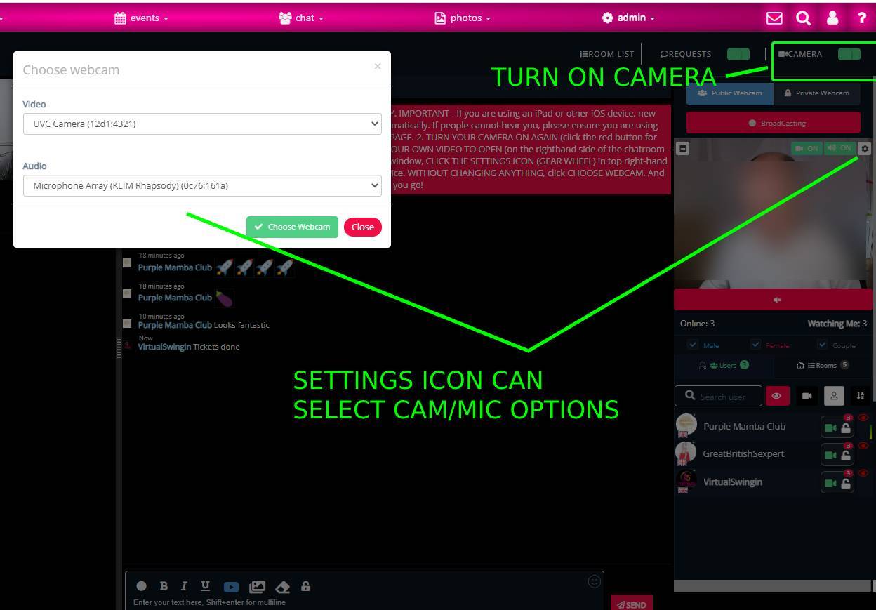 Please note, to join a multi-club virtual event, you must click that Event Flyer and then select that dedicated ENTER CHATROOM. Ticketed events are hosted within a special video chat room that connects all the clubs, NOT the site's regular video chat room.